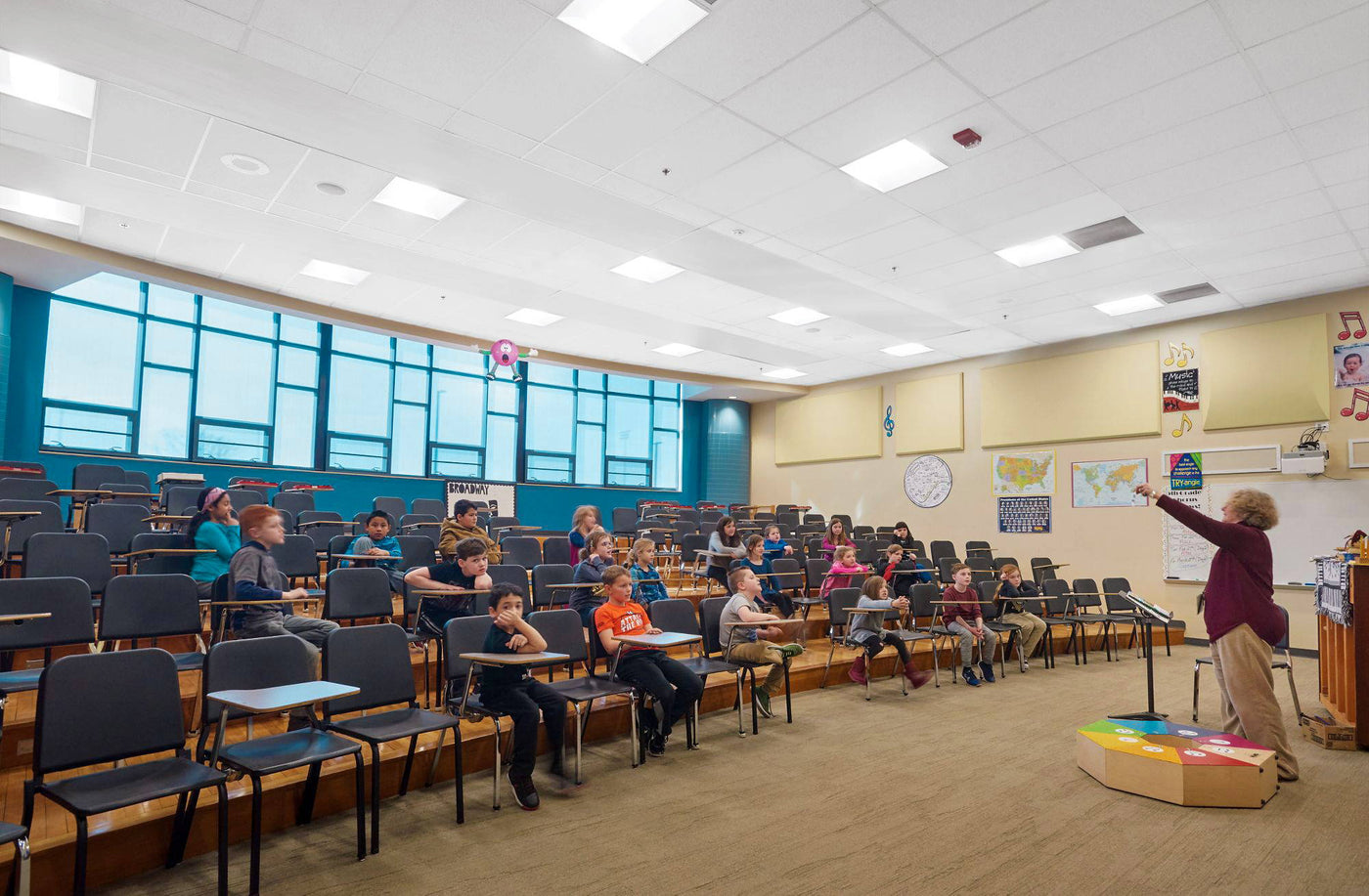 Acoustic ceiling tiles reduce sound levels